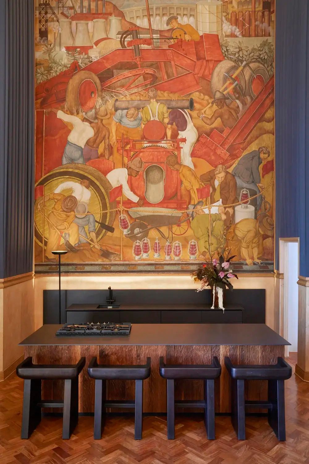 The furniture is soft. The message is not. There's something radical about reclaiming grandeur and making it speak African—through scale, through pigment, through resistance dressed in velvet.