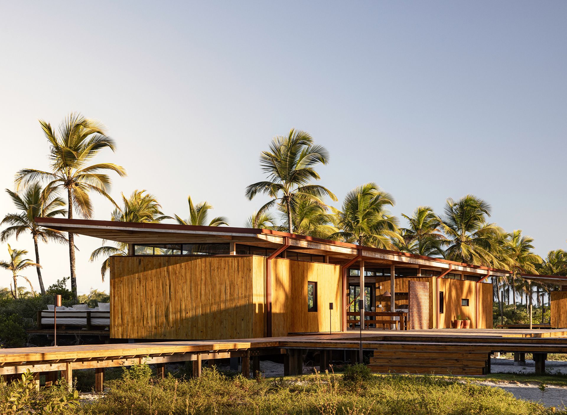 Guided by timber modules that set a natural pace for how the house is experienced. Wood is the structure, the enclosure, and the atmosphere. Its repetition across walls, ceilings, decks, and circulation paths establishes a steady rhythm.